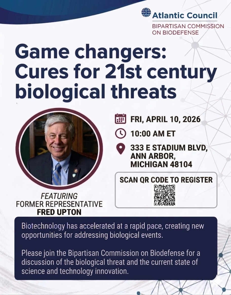 On Friday, April 10, at 10:00 a.m. ET, the Bipartisan Commission on Biodefense at the Atlantic Council will host its latest meeting, examining how biodefense technology innovators are achieving success and taking on challenges in an ever-changing threat environment.